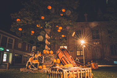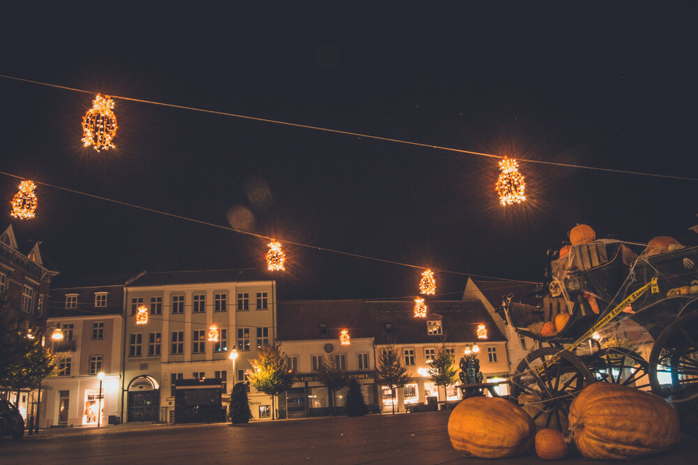 Torvearealerne blev dekoreret med klassiske Halloween-elementer som kister, gravsteder og en hestevogn. På Axeltorv skabte specialdesignede orange lamper og lysende græskar et varmt og uhyggeligt lys i mørket. Lysinstallationen blev understøttet af orange lyskæder, der bandt hele oplevelsen sammen og forvandlede byens gader til en tryllebindende oplevelse.