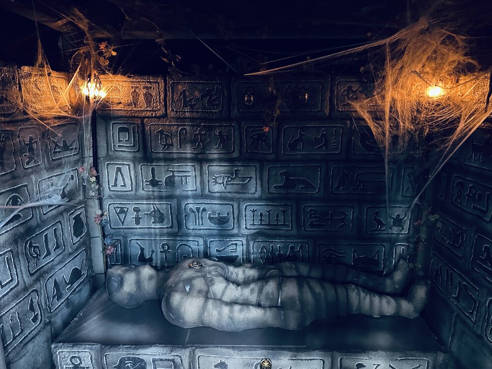 En af hovedattraktionerne er Heksens Hus, hvor besøgende træder ind i et mørkt rum fyldt med uhyggelige symboler, lysende krukker med kropsdele og skræmmende lydeffekter. Derudover har vi designet en interaktiv vendespilsvæg med 25 brikker, der giver information om de forskellige monstre, samt skabt scener rundt i centeret, der fremviser de klassiske Halloween-uhyrer.