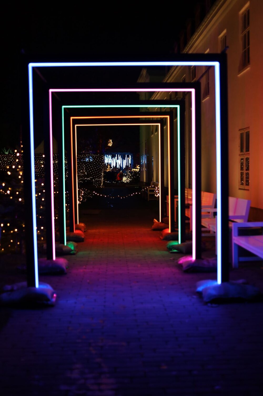 Til større events kan vores imponerende RGB-tunnel danne en dragende ramme, der vækker nysgerrighed og begejstring – perfekt til både sommerfester, receptioner og helårsoplevelser.
