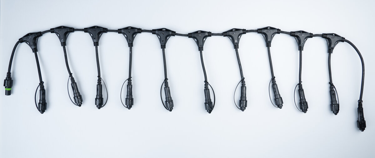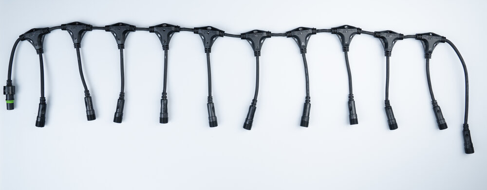 Früher benötigte man für jedes Lichtelement eine eigene Steckdose, doch mit unserem patentierten QuickFix™-System gehört dies der Vergangenheit an. Dank dieses großzügigen Verbindungssystems mit 11 Ausgängen können viele Produkte unserer QuickFix-Familie, die entsprechend gekennzeichnet sind, problemlos miteinander verbunden werden – und das bis zu einer maximalen Belastbarkeit von 200 Watt. Jedes QuickFix™-Produkt wird einzeln qualitätsgeprüft und entspricht der Schutzart IP67, um ein sicheres Arbeiten im Handbereich zu gewährleisten. So lassen sich große, professionelle Dekorationen mit nur einer Steckdose realisieren und einfach verkabeln. Der Divider ist insgesamt 140 cm lang. Die einzelnen Ausgänge sind jeweils 10 cm voneinander entfernt und haben eine Länge von 20 cm.