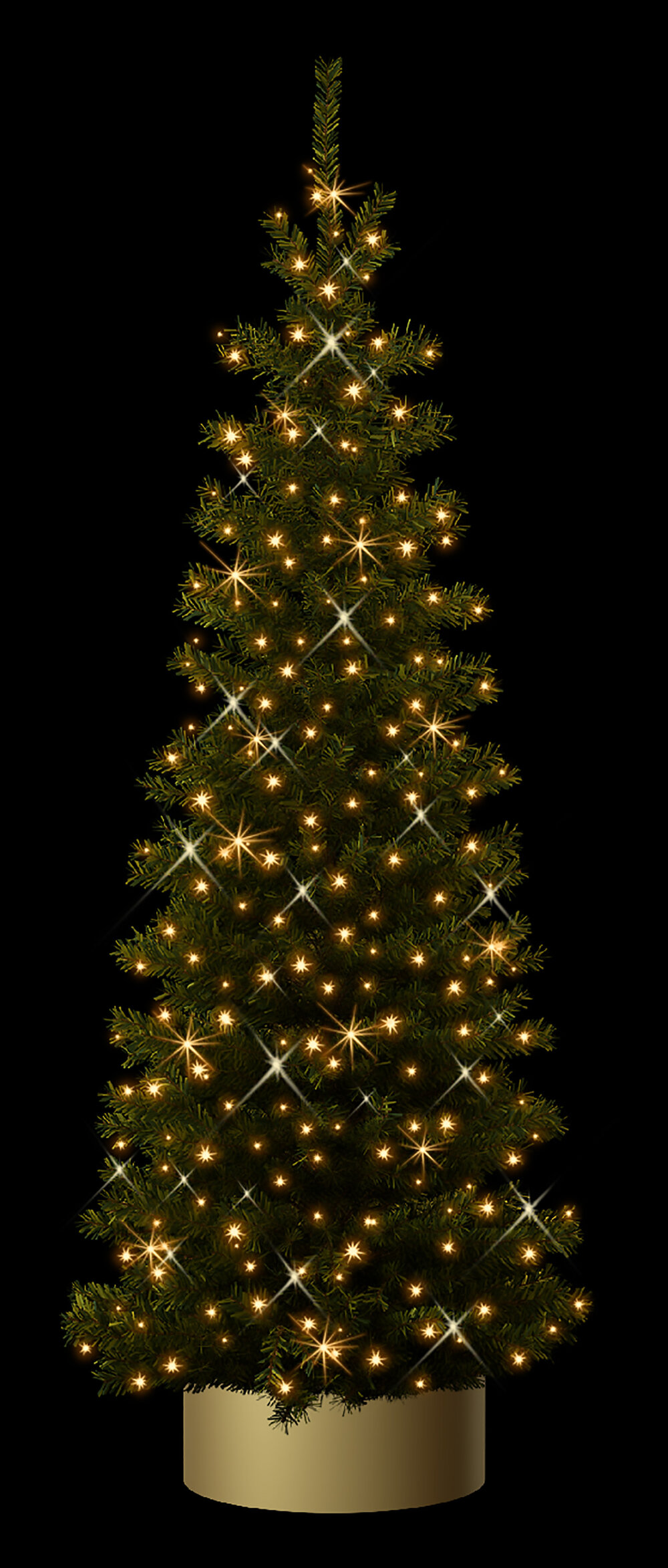 Elegante Kunstbäume und schmückende Grüngirlanden, versehen mit warmweißen LED-Lichtpunkten. Die natürliche Farbe des dichten Buschwerks aus Tinsel-Tipps und Spritzguss-Tipps, in Verbindung mit der hohen Dichte an verarbeiteten Tipps geben der Grünware einerseits ein echtes Aussehen und andererseits ein festliches Lichtbild. Jede einzelne Lampe ist jeweils an einem Tipp befestigt und die Kabel wurden ins Innere des Produkts gelegt. Auf dem QuickFix™ Tree in den Dimensionen 1,2 m x 2,1 m erstrahlen 720 patentierte LEDs. Die QuickFix™ Simple Garland überzeugt mit 240 Lichtpunkten, während die gebogene QuickFix™ Swag Garland mit 360 LED-Lichtpunkten Feststimmung aufkommen lässt. Mit Hilfe des patentierten QuickFix™ Systems können mehrere Bäume bzw. Girlanden problemlos aneinander gekoppelt werden.