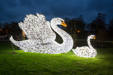 Strahlend weiß und von imposanter Statur sind die Schwanenmutter und das Schwanenbaby vor kurzem von der MK eigenen Manufaktur in Prešov, Slowakei, in den Pool des Holtkuile-Geschäfts in Raalte, Niederlande umgezogen. Wo Pflanzen, Blumen und Gartenaccessoires angeboten werden, sorgen die beiden leuchtenden Schwäne nun für eine ganz besondere Magie und elegante Lichtstimmung. Es ist kein Zufall, dass die Lichtmotive aus Prešov allesamt mit Qualitäts-Zertifikaten ausgezeichnet sind - schließlich werden sie in Handarbeit, mit viel Liebe zum Detail und unzähligen Lichterketten zu überlebensgroßen Installationen gefertigt.