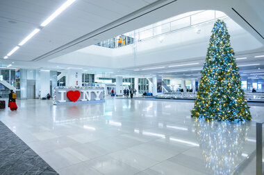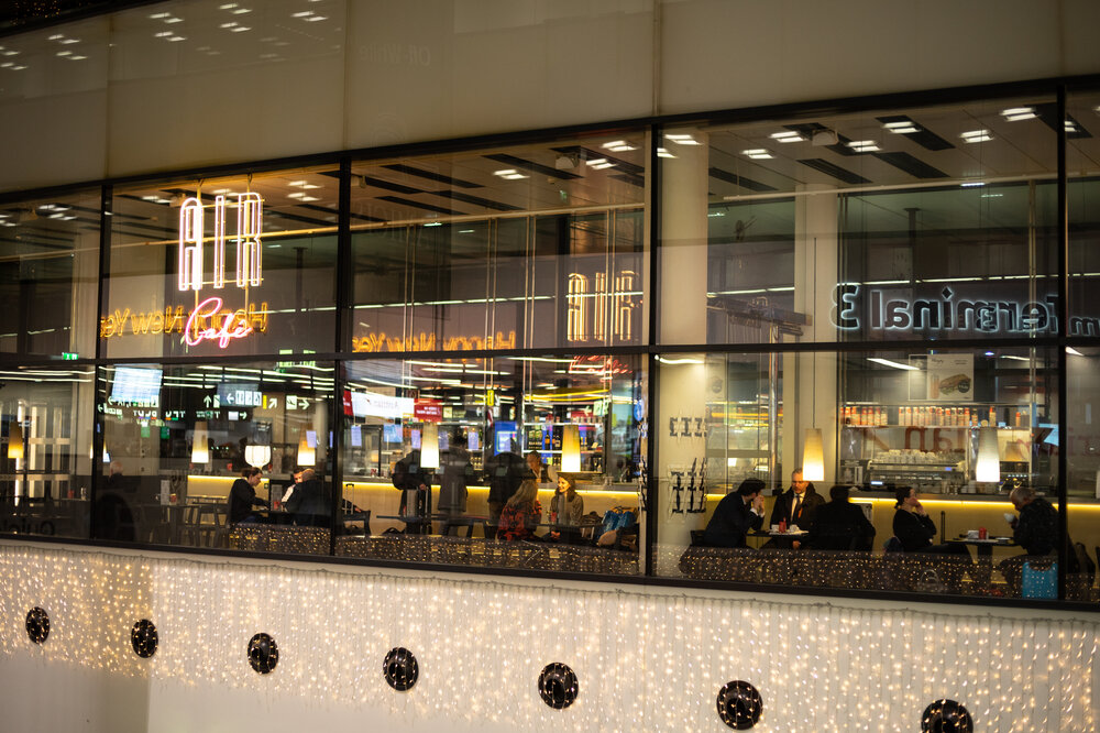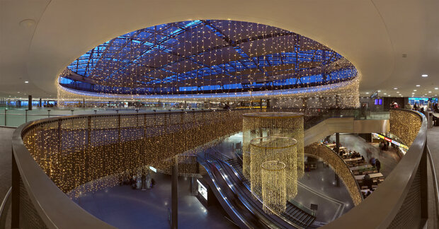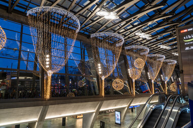 Als Experte für eine atmosphärische und festliche Beleuchtung sowie die Gestaltung von Orten arbeiten wir eng mit Flughäfen, Bahnhöfen und anderen Drehkreuzen für Reisende zusammen. Wir schaffen einladende Orte, an denen sich Menschen sicherer und entspannter fühlen. Ihre Zufriedenheit verbessert sich durch Lichtinstallationen nachweislich.