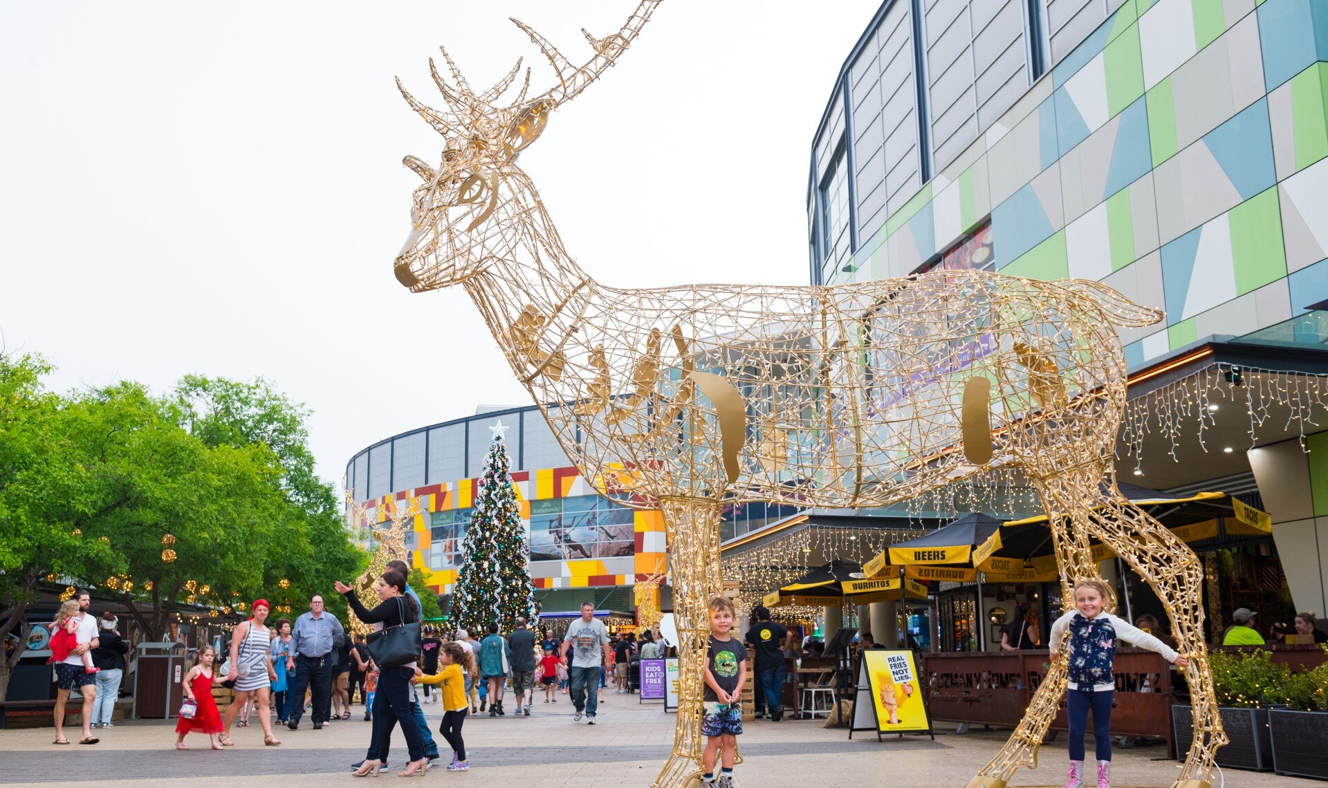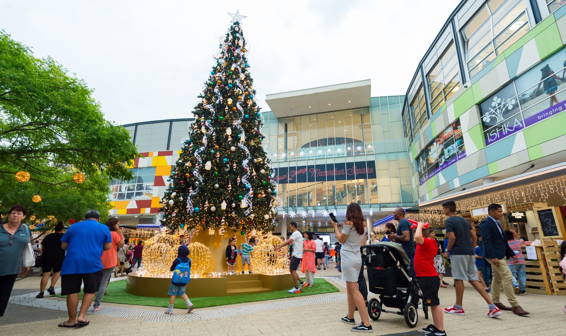 In 2019, a Christmas decorations installation was implemented at the MacArthur Square Shopping Centre in the outdoor area of Kellicar Lane. The centerpiece of the installation was a 10.4 meter high Christmas tree filled with a variety of spectacular elements and ornaments, including big different sized balls that created a beautiful photo opportunity. In addition to the tree, three 3D stags measuring 5 meters high were also installed in the area.