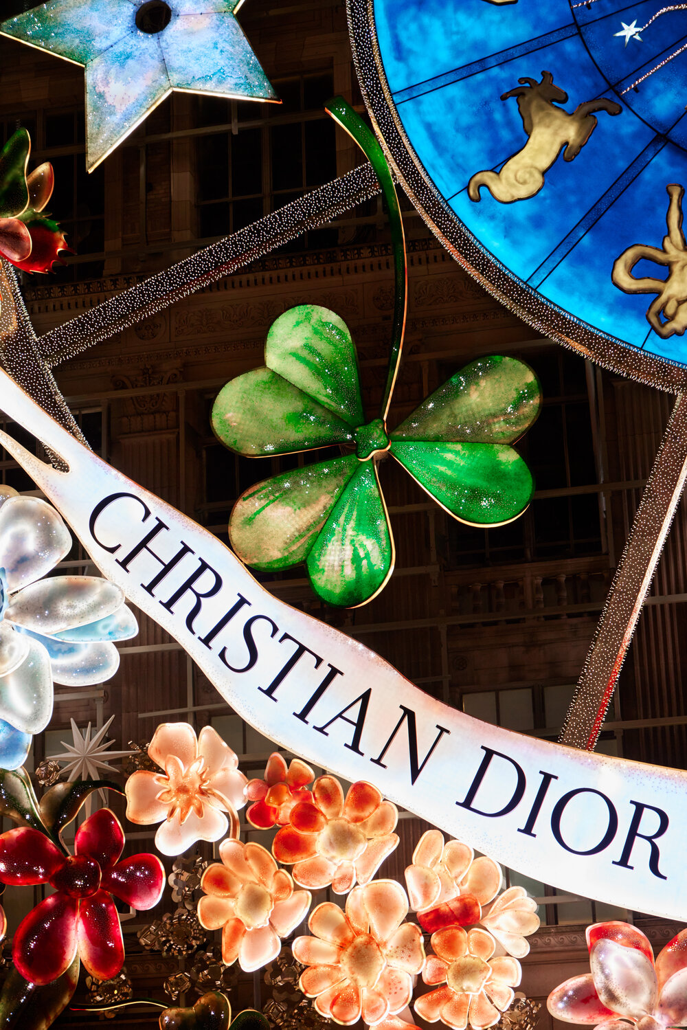 American Christmas was honored to be part of the Christian Dior X Saks Fifth Avenue Holiday Facade Takeover. This epic project was a remarkable partnership and collaboration with 12 different companies across 6 countries which transformed the ten story facade of the luxury department store into a ‘Carousel of Dreams’ highlighting various symbolic codes of the Fashion House. These custom made works of art featured watercolor effects and three-dimensional metal elements.