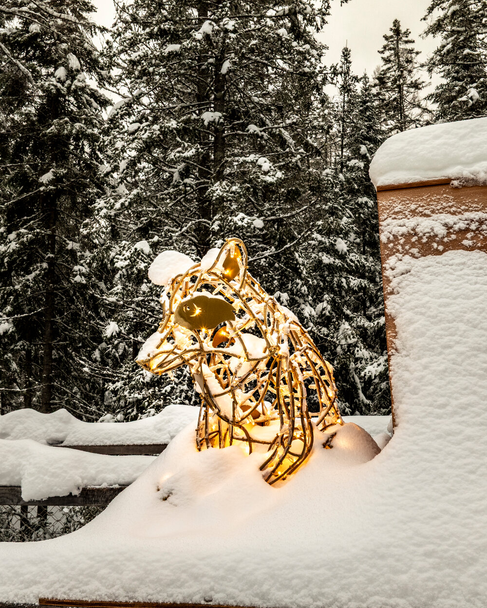 MK Illumination’s team produced over 400 decorative items, delivering showstopper pieces ranging from opulent, oversized floor decoration and lighting that included walk-through ornaments and LED woodland creatures like reindeer and moose, to stunning customized suspended embellishments. They also delivered festive outdoor fireside lounges, equipping spaces with fire pits where guests could warm up, relax and enjoy the fireside ambience on Muskoka chairs and benches whilst enjoying food and filling up on holiday cheer from participating vendors.