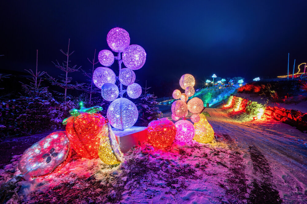 Immerse yourself in a sea of lights, along glowing paths and enjoy Christmas treats.