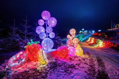 Sparkling light illuminations in the adventure Park Eis Greissler light up the hunchbacked world during the cold and dark Winter weeks. The park transforms into a magical splendor and gives unique moments and unforgettable adventures for the whole family.