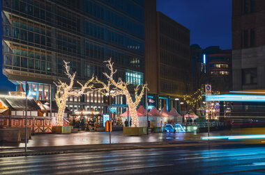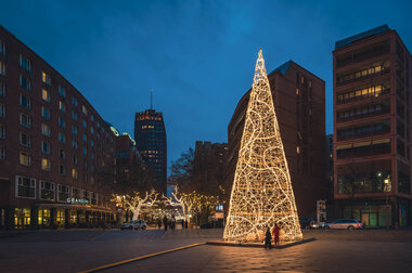For the first time, we have combined and animated a total of 200 meters of Contour Light with Twinkly lights and our popular String Lites on the Cone Struct. Additionally, 48 fully animated Twinkly lights are elegantly draped across the pedestrian zone. Every 15 minutes, a mesmerizing light show lasting nearly three minutes captivates onlookers.