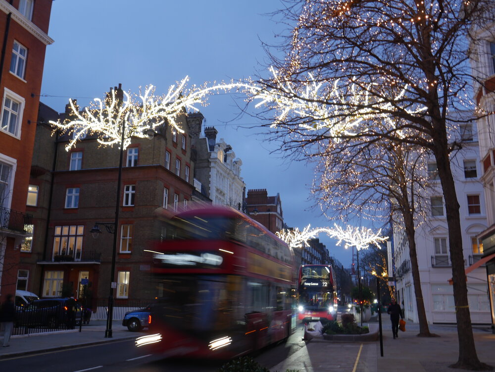 Each branch motif consisted of 14 pieces, with overall dimensions of 19 meters wide by 5 meters high. The scheme featured 14 such motifs across the length of Sloane Street. Similar, albeit smaller, branches adorned the trees of Sloane Square, carrying the theme through the area. The entire scheme was further enhanced with warm white string lighting in every living tree along Sloane Street and Sloane Square, totaling 3,600 sets of string lights. At ground level, the scheme was completed with 80 potted trees in gold pots and a series of 150 golden spheres placed throughout the planters, creating a magical and enchanting atmosphere for all who visit.