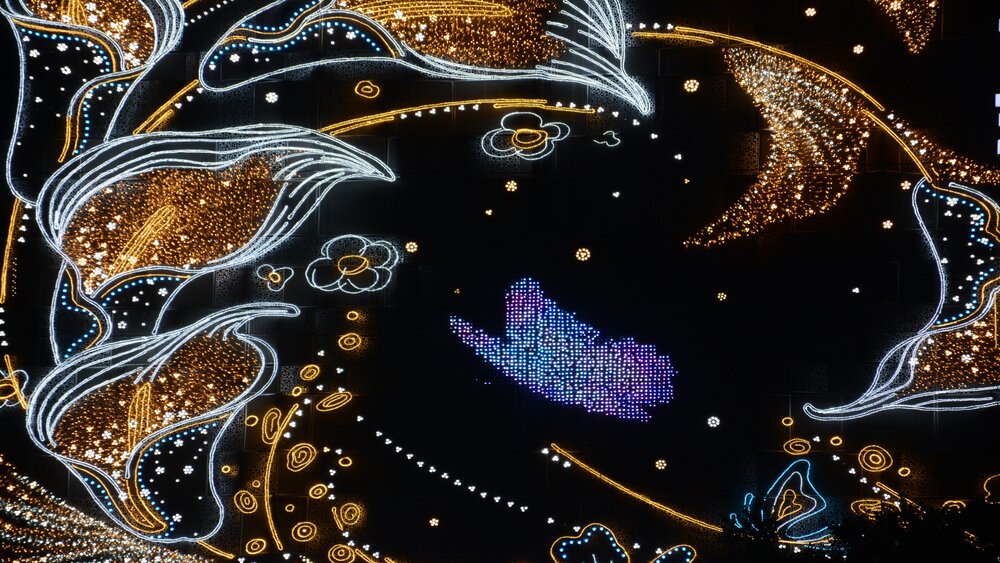 A poetic vision unfolds at Hisense Plaza Village, where light and symbolism intertwine to create a breathtaking façade installation. Inspired by the resilience of nature, the design embraces the concept that even cracks can give birth to new life—a testament to renewal and transformation.