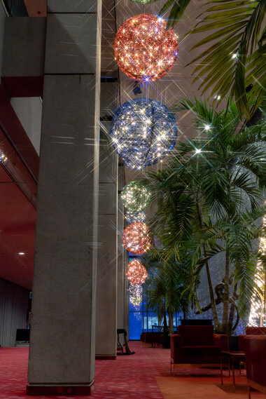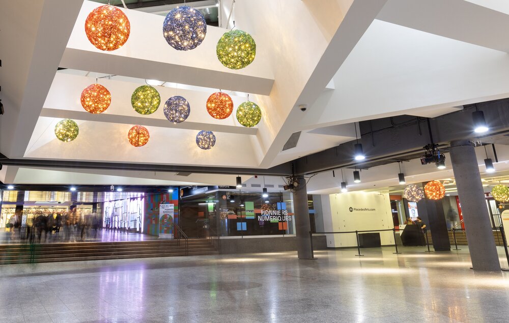 The Maisonneuve Theatre at Place des Arts displays vibrant colors for the holiday season. Our Organic product range blends perfectly with the building's architecture.