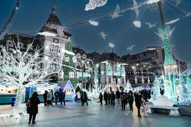 In 2023, MK Illumination Romania transformed the city of Craiova into the enchanting playground of the Snow Queen. The tale unfolds with an evil troll crafting a magic mirror, changing all it reflects. When the mirror shatters into countless fragments, spread worldwide, those unfortunates enough to have a piece enter their eye or heart find their hearts turned to ice, perceiving only the negative and ugly.