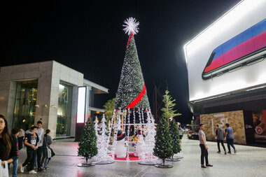 MK Illumination UAE and MK Illumination Turkey worked closely with the mall to design a series of new lighting motifs to give the outdoor area a festive feel. Drape Lites with reflective crescents were installed on the facade. Fan-shaped lanterns hung over the heads of visitors and colourful 2D crescents decorated with colourful balls adorned the palm trees. Visitors to the shopping centre felt welcome and enjoyed the inspiring atmosphere.