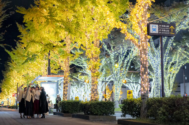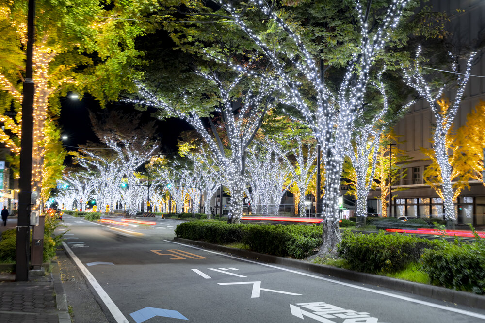 This project by MK Illumination Japan unites the world like a shining parade of glowing lights in Wakayama. During the three-month event in 2023, around 750,000 light bulbs illuminated some 278 trees along the approximately 2 km road between JR Wakayama Station and Wakayama Castle, transforming the road into a sparkling avenue of trees at night.