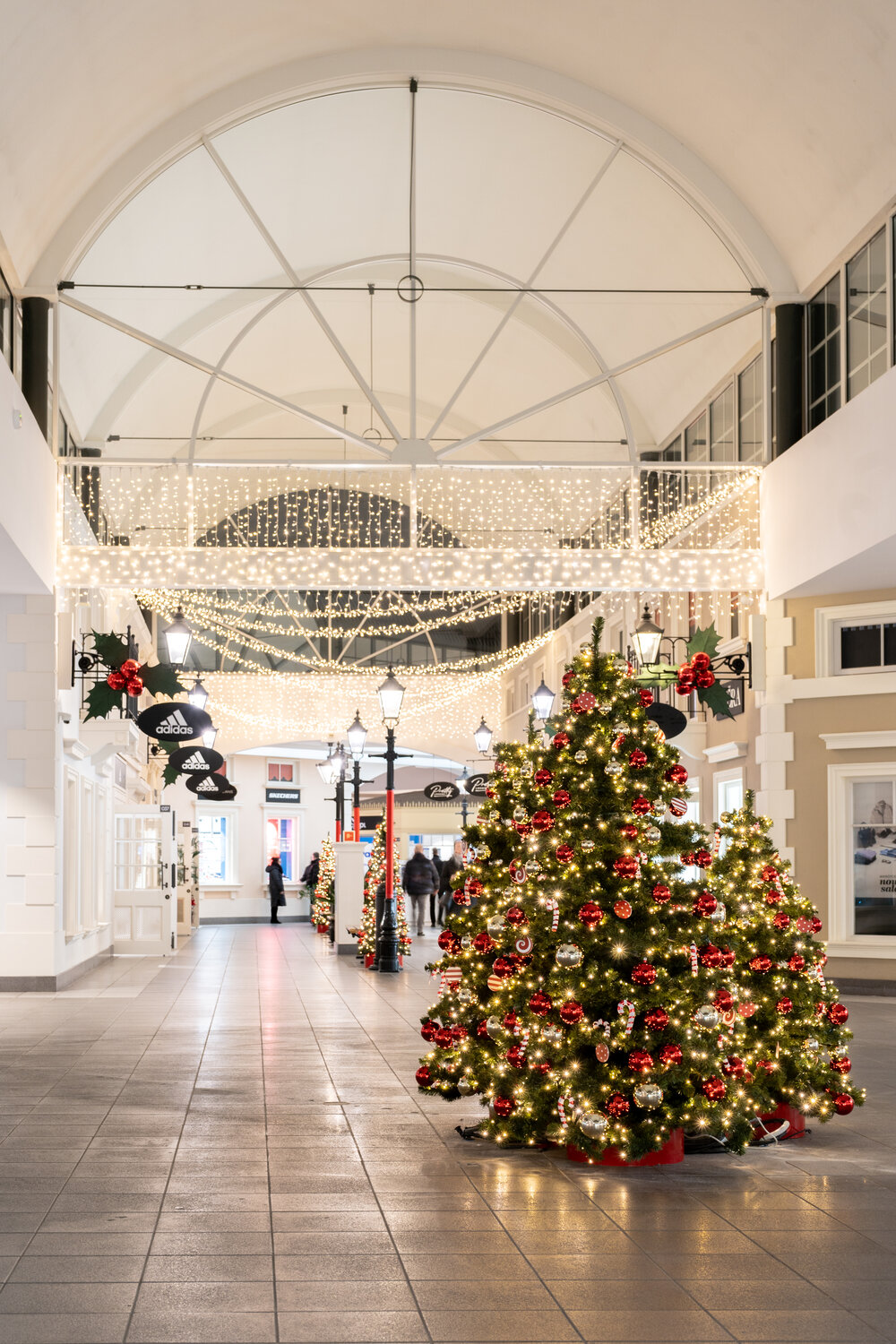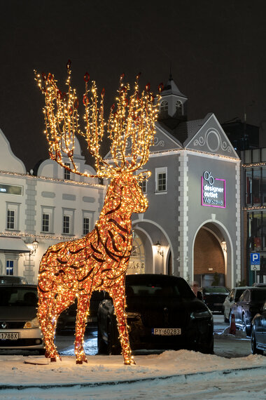 Designer Outler shopping centres have a very original and distinctive architecture, so creating a decoration for them is always a kind of an exciting challenge, for sure. This year main theme demanded by the brief was to follow the "American Christmas" style, so we decided to highlight the strong features of interiors by introducing a very classical elements of decoration.