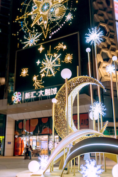 In Jiangmen, China, the IMIX PARK in Xinhui district presents "ZANXINGYEYUE," in Chinese, it means that the thing worn is dazzling. The text "Xing" and "Yue” also contain the meanings of the stars and the bright moon themselves, which symbolize peace and beauty, and can bring a touch of coolness to people's hearts on hot summer nights. Amidst the city's concrete expanse, MK Illumination China created a haven where bright stars fall, guiding visitors to a "Fantasy City in the Sky."