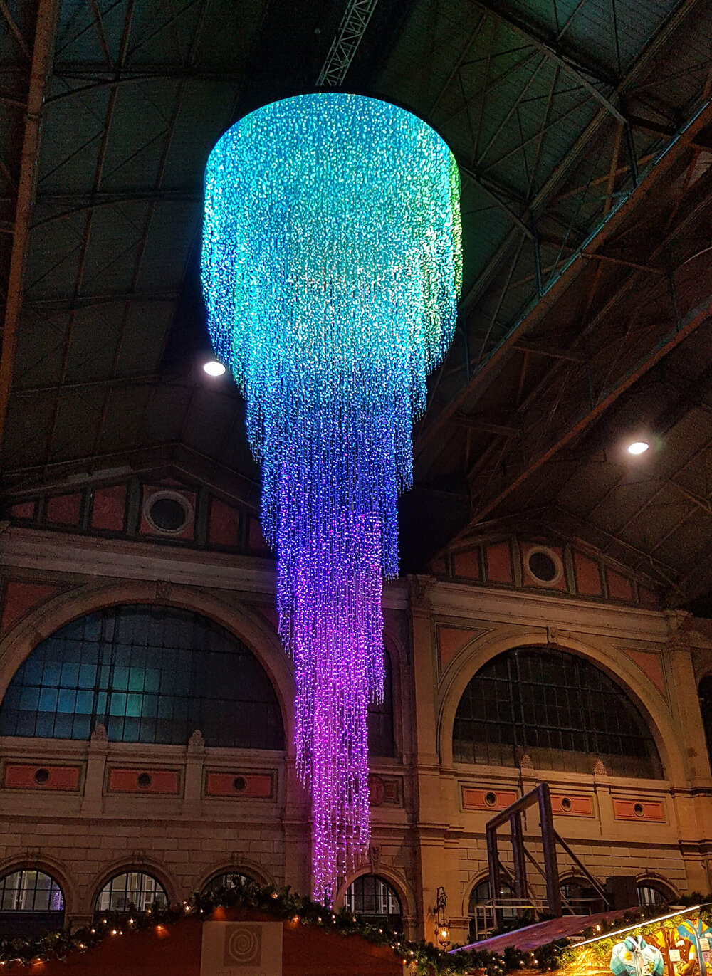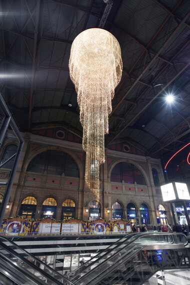 Zurich Central Station opted for an option that offered unlimited color options through RGB, as well as possibilities in subsequent years such as the large display board in 2017, which allowed passengers to choose which effects were played on the chandelier. The idea behind this on the part of SBB is to sensitize passengers to the digitalization of the future.