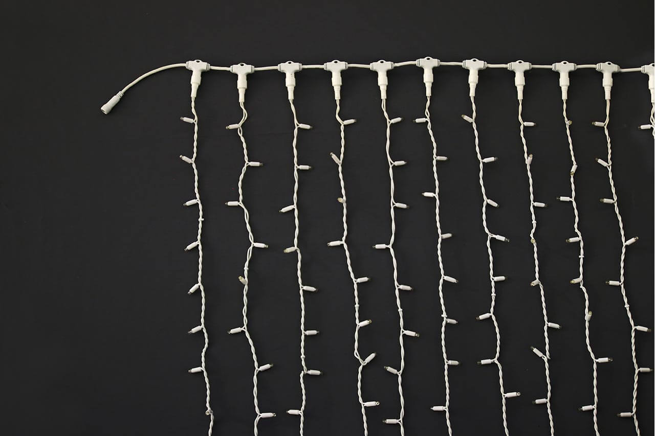 The LED Drape Lites® are our enchanting light curtains that transform any environment into a sparkling sea of lights thanks to their high luminosity. The main carrier cable, from which the individual strands gently fall at a 90° angle, measures 2 meters. Each hanging light strand features 30 radiant LEDs over a length of 4.5 meters and 230 V, creating a charming 15 cm spacing between light points. A total of 600 sparkling LEDs across 20 strands illuminate the installation area. Both the LEDs and the carrier cable are available in various colors. Thanks to the patented Quick-Fix system, up to 2 main carrier cables can be effortlessly connected. Each strand is individually replaceable, enhancing the flexibility and durability of these magical light curtains. Power is supplied to the connected 36V products via a central transformer, which determines how many light curtains can be linked. This QuickFix™ product is individually quality-tested and rated IP67, ensuring a safe, harmonious, and romantic atmosphere—ideal for secure use within hand reach.