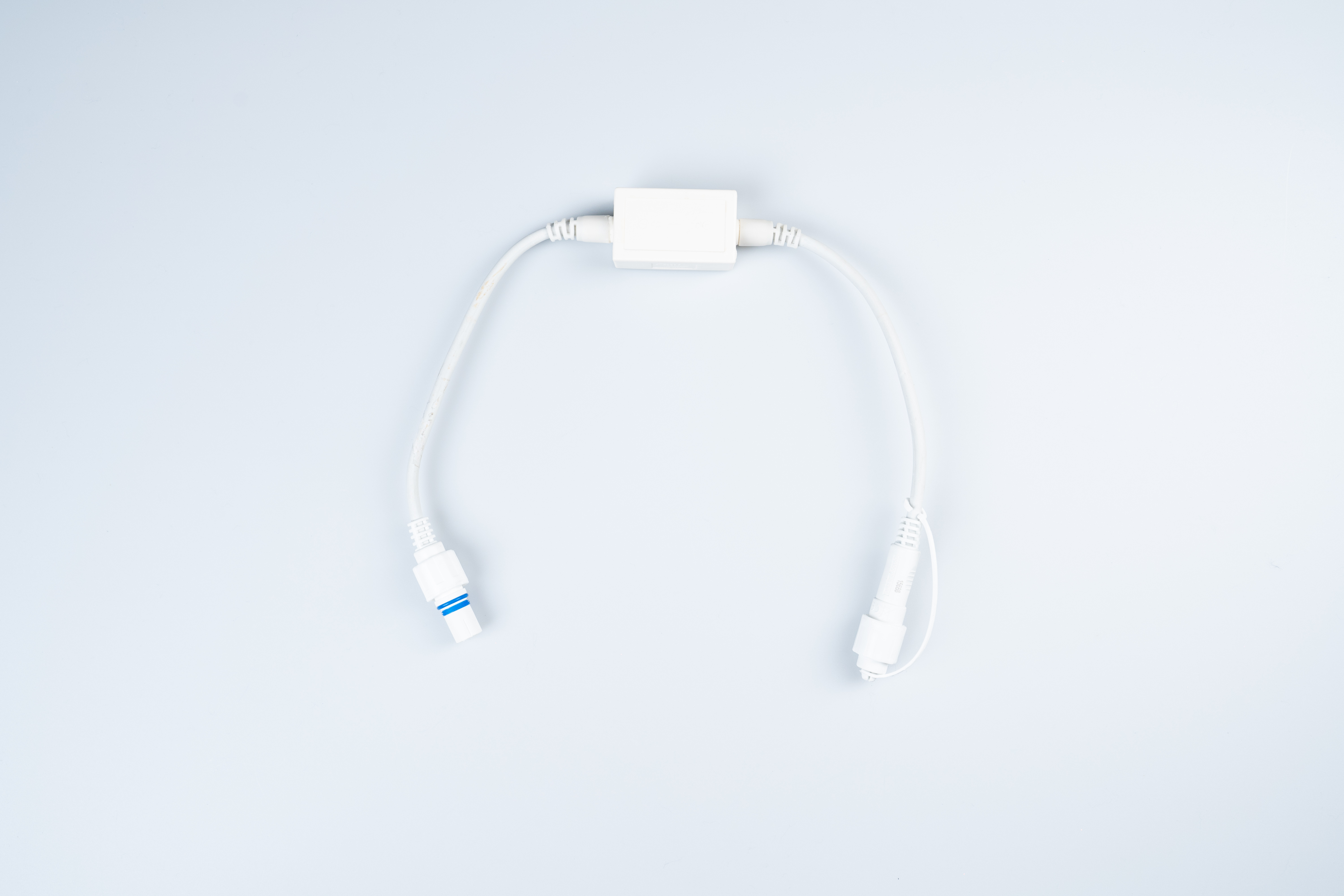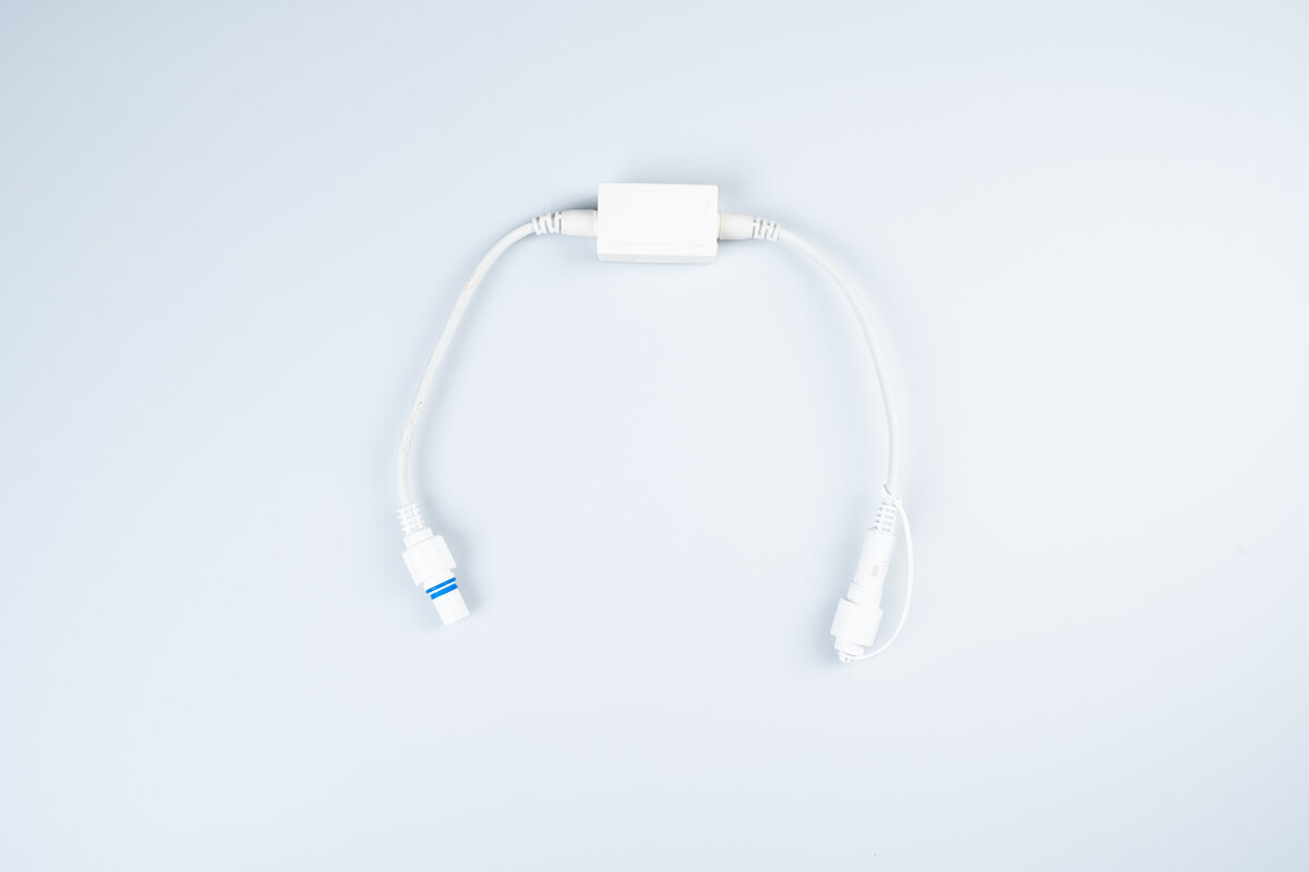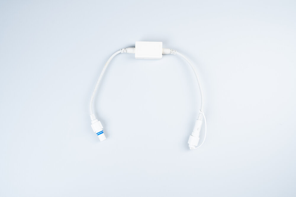 This adapter guarantees a secure connection between outdoor and indoor products, both operating at 230 V.