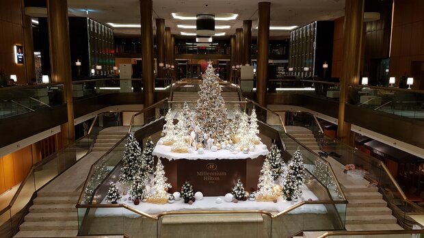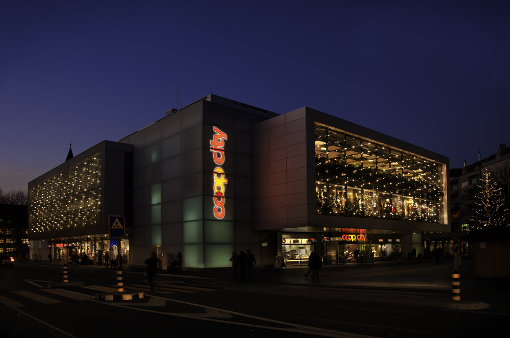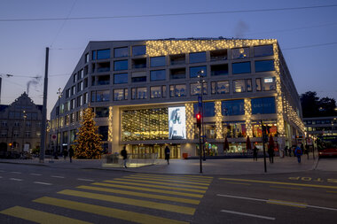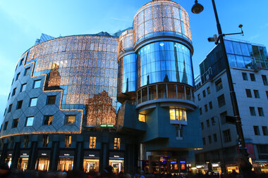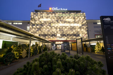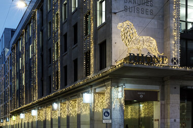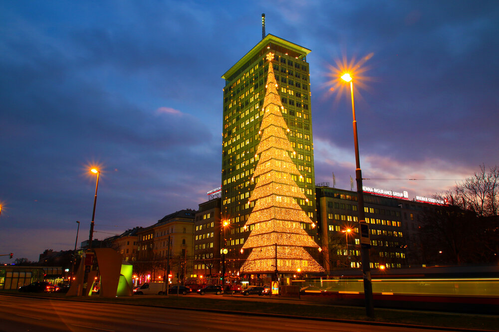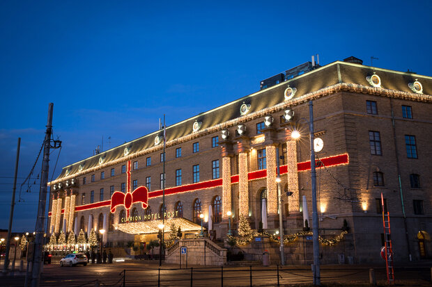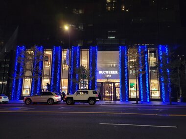 Turn a corporate building into a local landmark with elegant or extravagant façade lighting. Add eye-catching light art or festive decorations for additional impact.