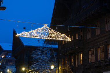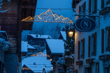 Dans le centre pittoresque du village de Champéry, MK Illumination fait briller le charme hivernal de l'univers montagnard. Au-dessus des rues s'étendent des silhouettes lumineuses de montagnes stylisées, qui font écho à l'environnement alpin et le plongent dans une lumière festive. L'éclairage blanc chaud s'intègre harmonieusement à l'architecture traditionnelle et crée une atmosphère accueillante qui séduit aussi bien les habitants que les visiteurs.