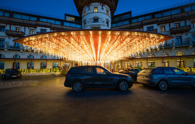 Au Dolder Grand, MK Illumination Switzerland a embelli la porte cochère caractéristique avec un concept d'éclairage sur mesure.