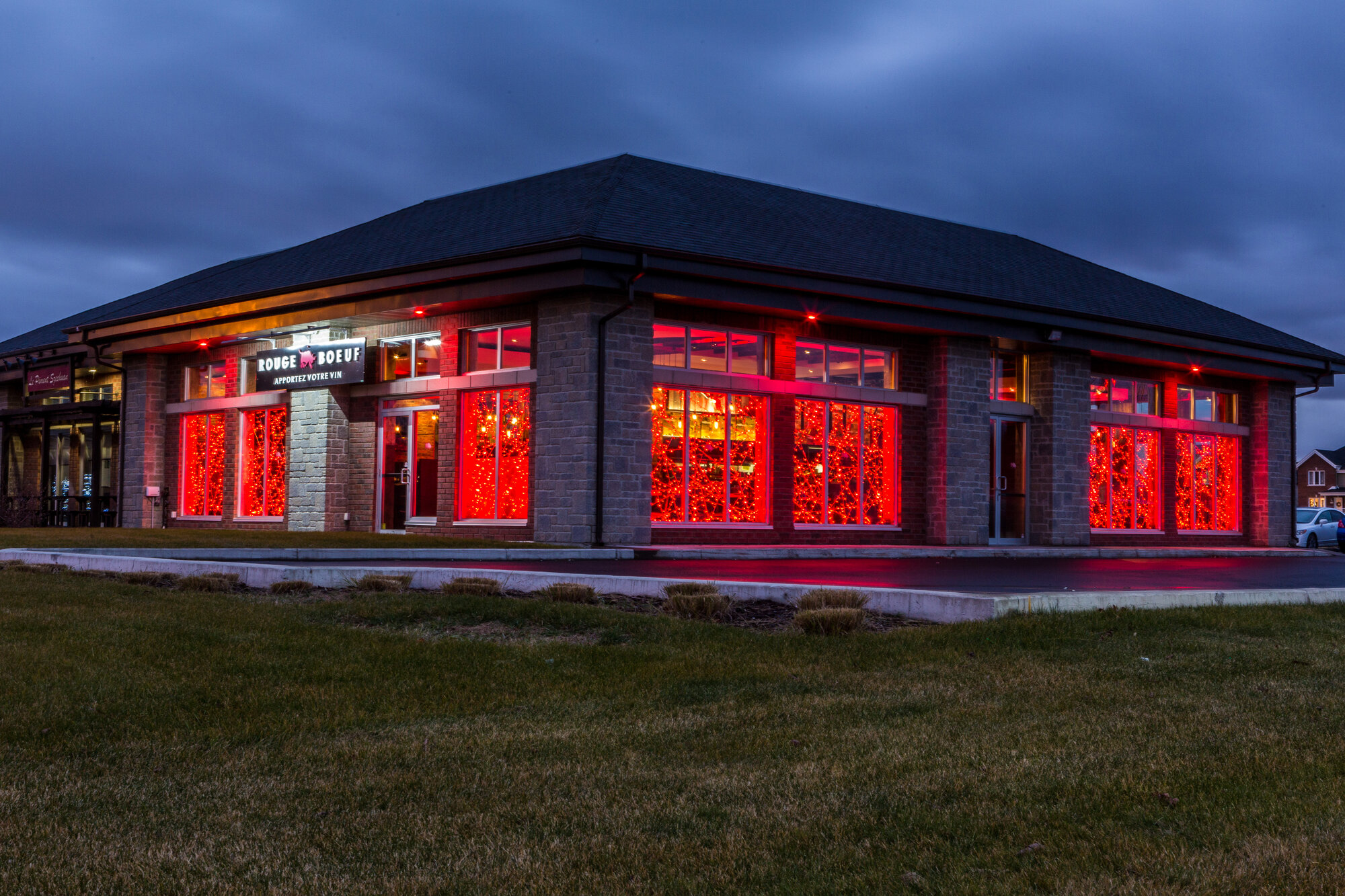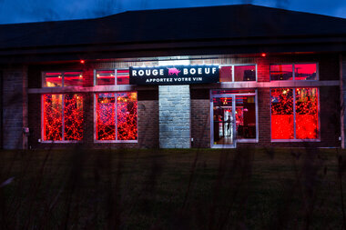 Rouge Boeuf is located on the outskirts of Montreal and offers its guests a cosy atmosphere. The restaurant's management wanted to create a festive atmosphere that supported their branding. MK Illumination Canada East created a Christmas dream in red by decorating the restaurant's windows with red LED strands. The restaurant was visible from afar, and the cheerful glow of the lights greeted visitors from afar.