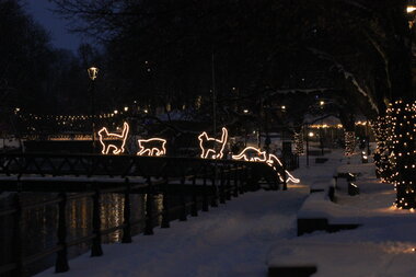 Regular consultations with our client allowed MK Illumination Sweden to ensure that the design remained aligned with their vision at every step. Drawing inspiration from Uppsala's iconic landmarks, including the cathedral, scientific achievements, and beloved cultural figures like the famous cat Pelle Svanslös, the foundational concept displays a warm, inviting, and timeless charm. This concept serves as the cornerstone, weaving a seamless narrative through Uppsala's streets and squares, unifying the festive ambiance.