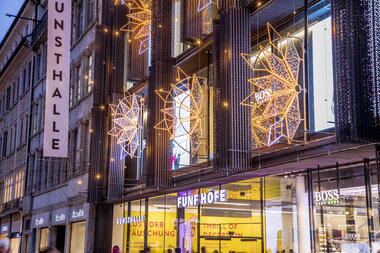 The Fünf Höfe shopping centre in the centre of Munich is an exclusive, upmarket shopping centre with a unique mix of fashion, lifestyle, art and indulgence in an architectural work of art. At the heart of the centre is the Hypo Kunsthalle, which hosts a variety of themed exhibitions.