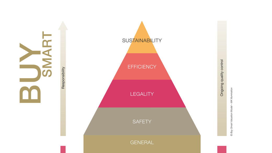 MK Illumination’s BUY SMART is the first evaluation model for our decorative lighting products. This model will help you check and evaluate crucial quality aspects when buying lighting products. It is based on four criterias: Safety, legality, efficiency and sustainability.