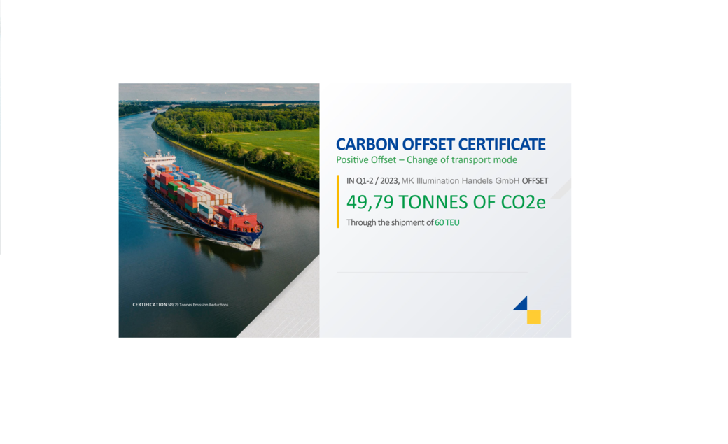 To minimise our transport-related emissions, we do three things: produce locally wherever possible; use efficient logistics planning to reduce transport time and distances; and transport 90% of our Asian-produced lighting products using ship or rail. We also compensate for any unavoidable emissions through certified climate protection projects. That means that your lighting products reach you efficiently, with as low as possible transportation emissions.