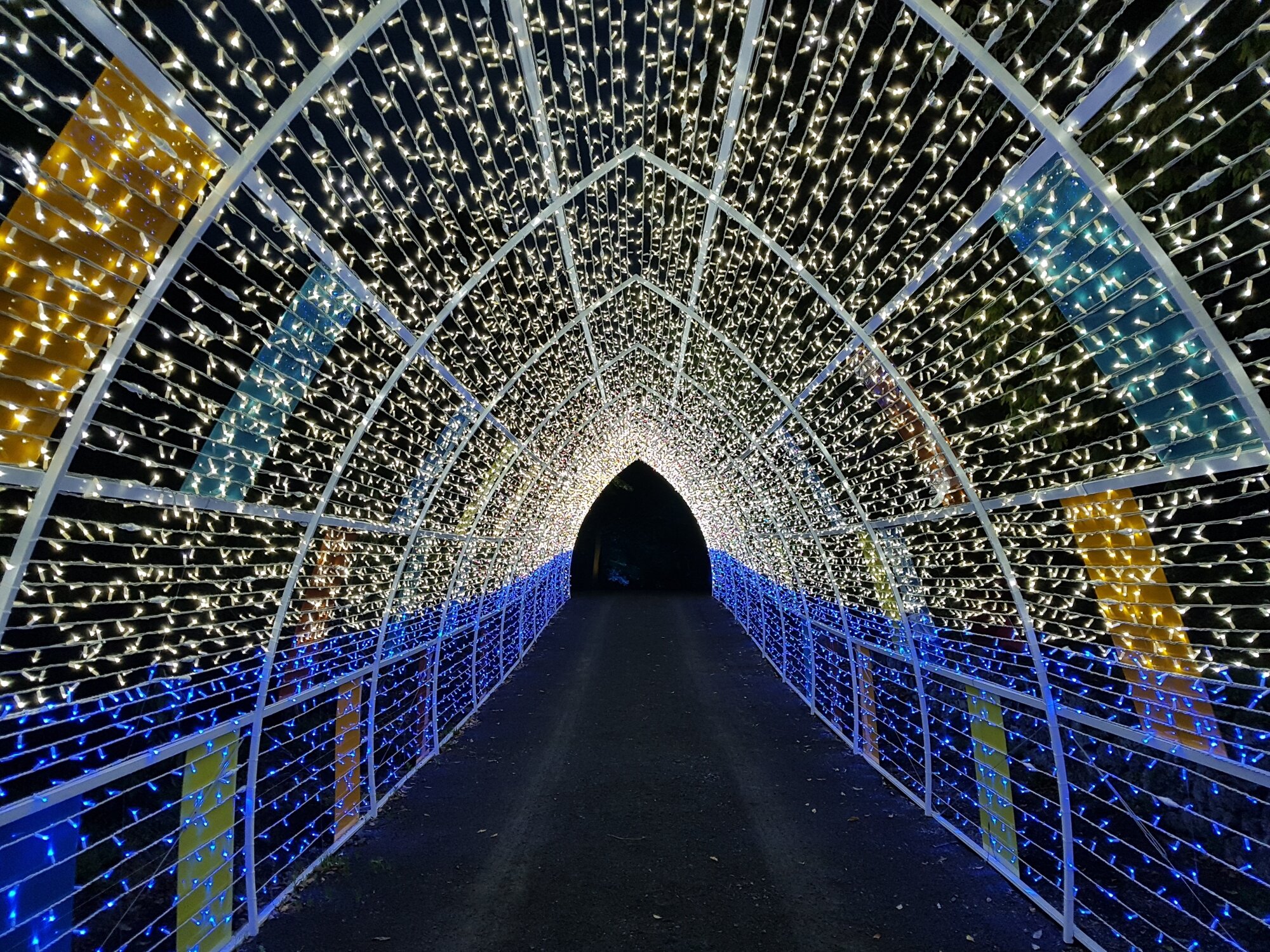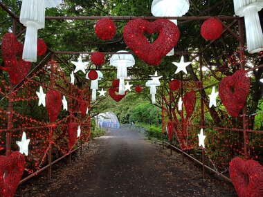 빛의 터널, 격자무늬 통로에 달려있는 수많은 빛으로 출렁이는 로맨틱한 오솔길에는 사랑의 전율로 떨리는 하트와 등불이 관람객을 인도합니다.